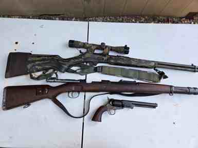 Marlin M30AS .30-30 Win lever-action Rifle, full-camo w/scope, strap $600. • 1944 Mauser M98 7x57mm Rifle, all original $350. • .36 Navy Revolver (black powder replica) $75. (in Kirbyville) (cell) 972.741-9434