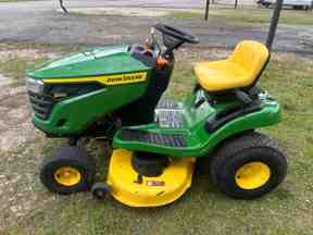John Deer S100 riding Mower w/cover, dump trailer - runs/mows great $1,700./offer, you haul (in Lufkin) (cell) 615.478-0920